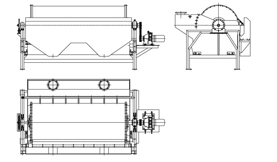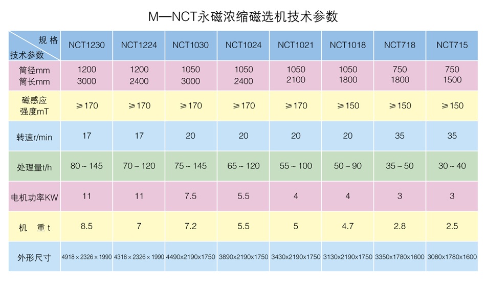 該系列永磁濃縮磁選機為適應磁選廠上下作業段磁性礦物濃度調整需要而研發的磁選機,其特點是對強磁性礦物回收率高,處理量大,濃縮效果顯著,在給礦濃度20~30%時,磁性鐵回收率可達99.5%以上,濃度可達50~65%。